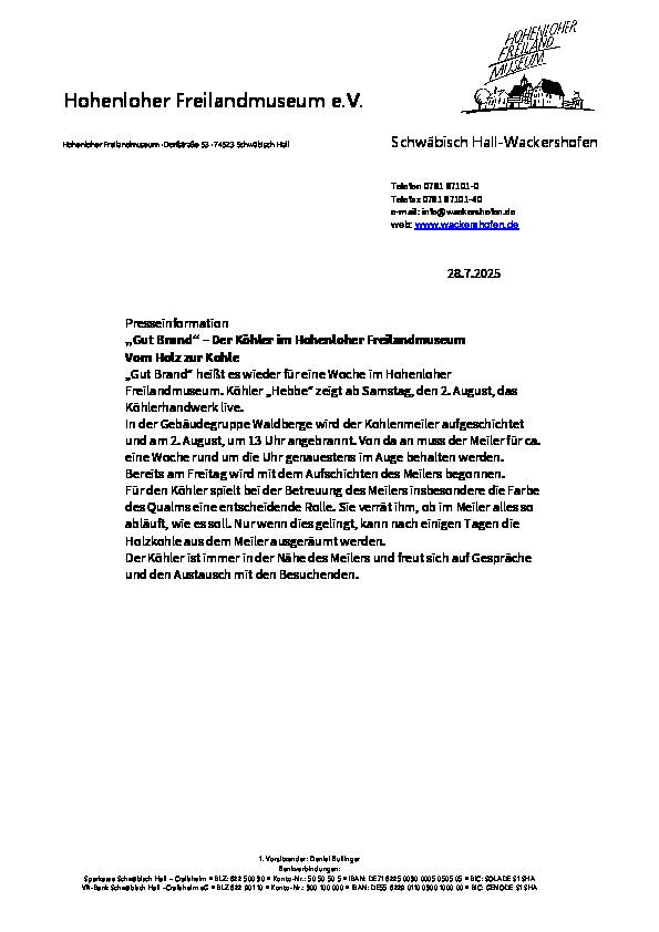 Ab Samstag, 2. August, findet die Veranstaltung „Gut Brand – Der Köhler im Hohenloher Freilandmuseum“ statt.