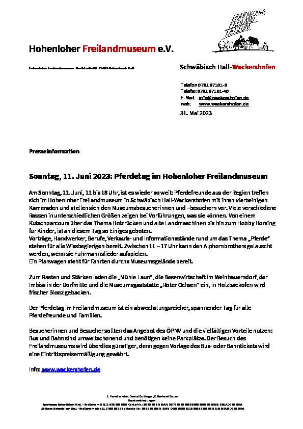Am Sonntag, 11. Juni, 11 bis 18 Uhr, ist es wieder so weit: Pferdefreunde aus der Region treffen sich im Hohenloher Freilandmuseum in Schwäbisch Hall-Wackershofen mit ihren vierbeinigen Kameraden und stellen sich den Museumsbesucherinnen und –besuchern vor.